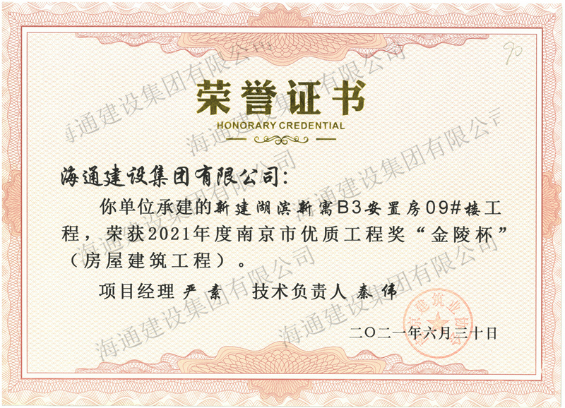 2021“金陵杯”-新建湖濱新寓B3安置房09#樓工程