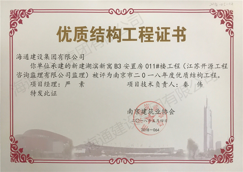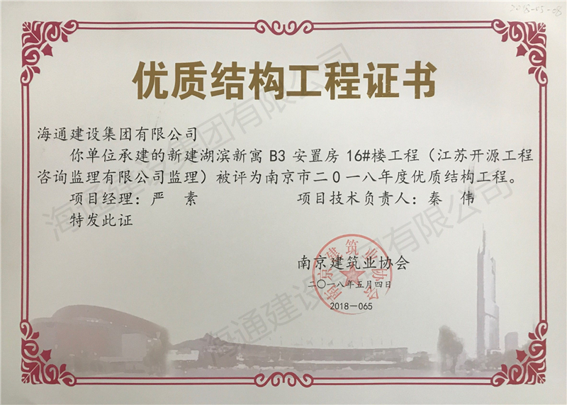 南京市優(yōu)質結構2018-新建湖濱新寓B3安置房15#樓工程