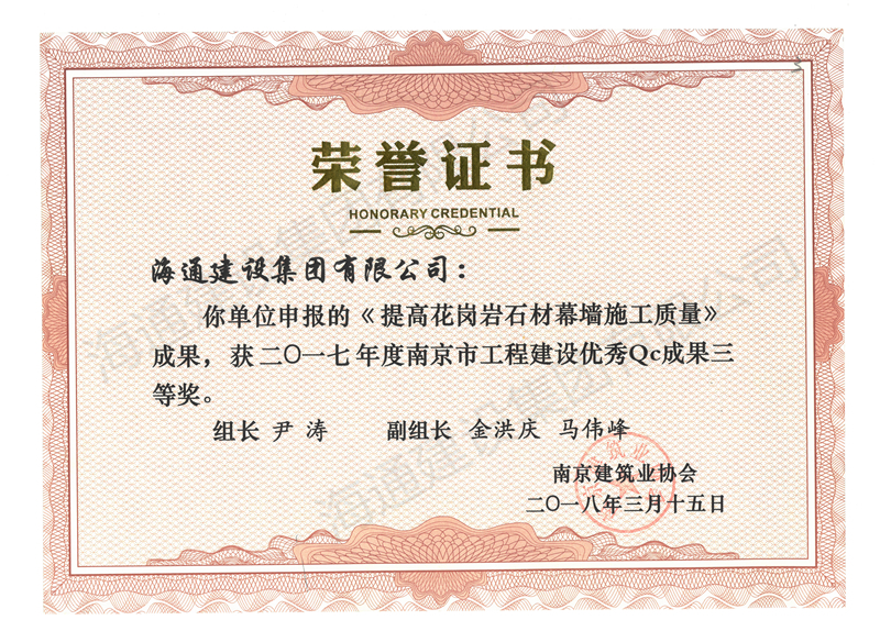 QC《提高花崗巖石材幕墻施工質(zhì)量》2018