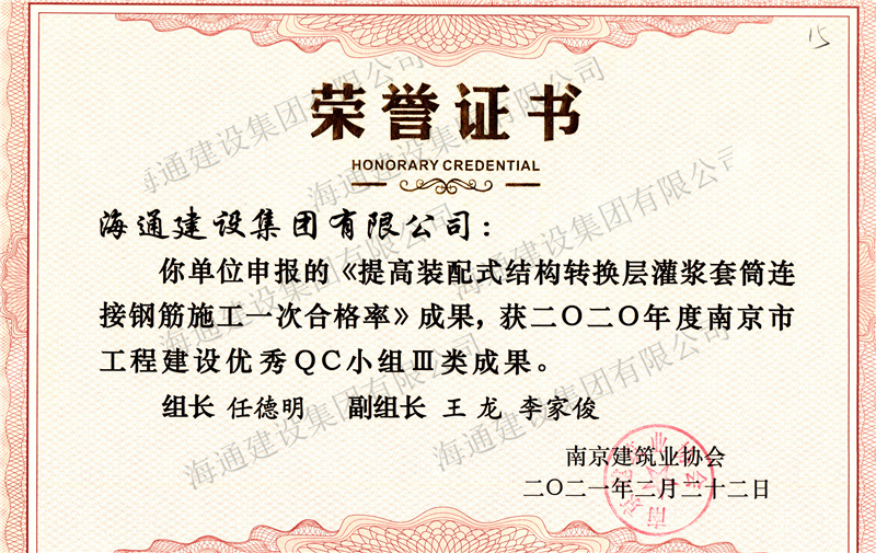 2021QC《提高裝配式結構轉換層灌漿套筒鏈接鋼筋施工一次合格率》