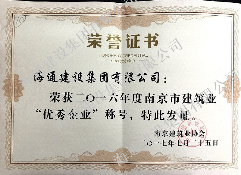 南京市優(yōu)秀企業(yè)稱(chēng)號(hào)2016