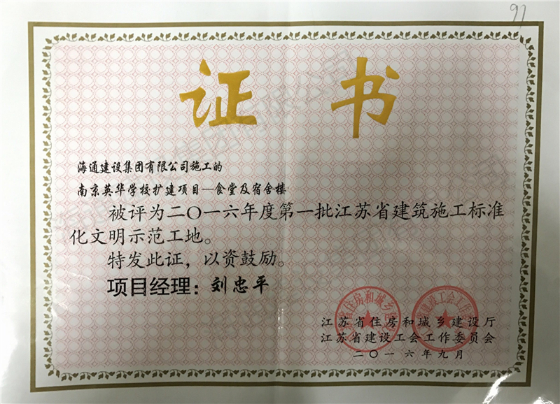 江蘇省文明工地2016南京英華學(xué)校擴(kuò)建項(xiàng)目-食堂及宿舍樓