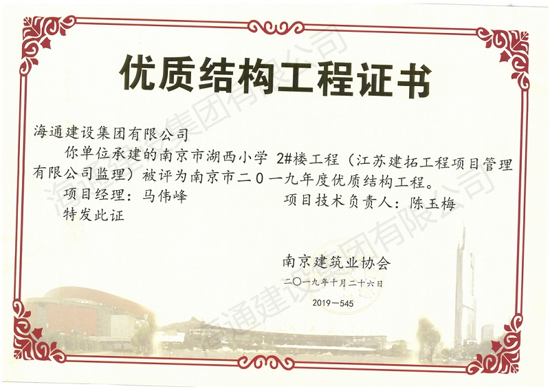 南京市優(yōu)質(zhì)結(jié)構(gòu)2019南京市湖西小學(xué)1#樓(G)工程