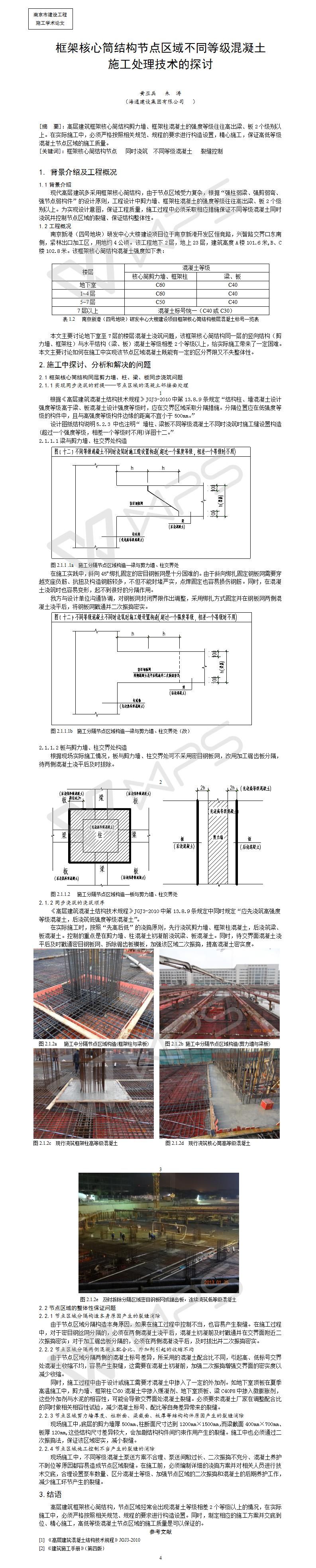 框架核心筒結(jié)構(gòu)節(jié)點(diǎn)區(qū)域不同等級(jí)混凝土施工處理技術(shù)的探討