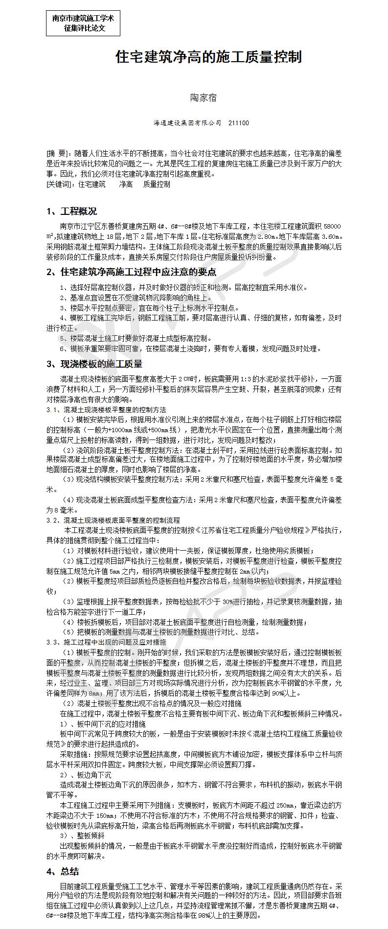 住宅建筑凈高的施工質(zhì)量控制