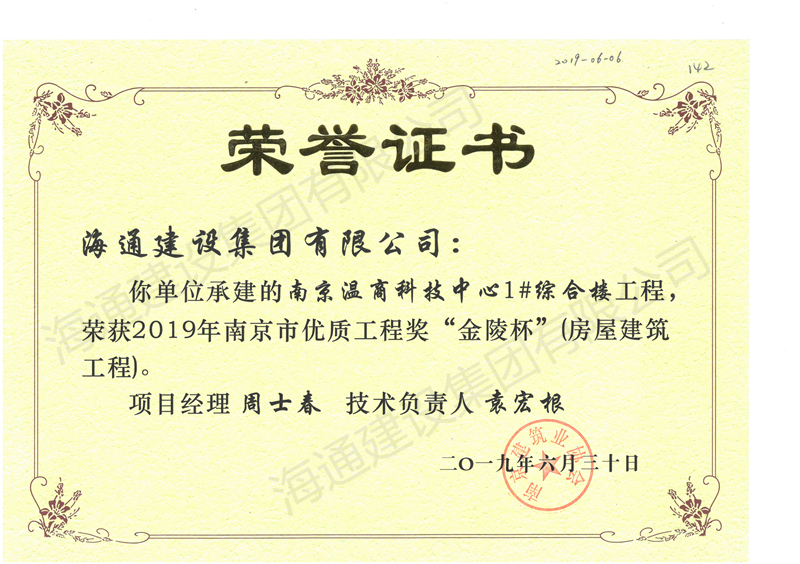 南京市金陵杯2019南京溫尚科技中心1#綜合樓工程