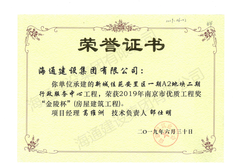 南京市金陵杯2019新城佳苑安置區(qū)一期A2地塊行政服務(wù)中心工程