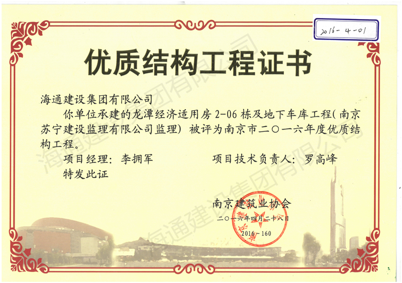 南京市優(yōu)質(zhì)結(jié)構(gòu)2016龍?zhí)督?jīng)適房2-06棟及地下車庫