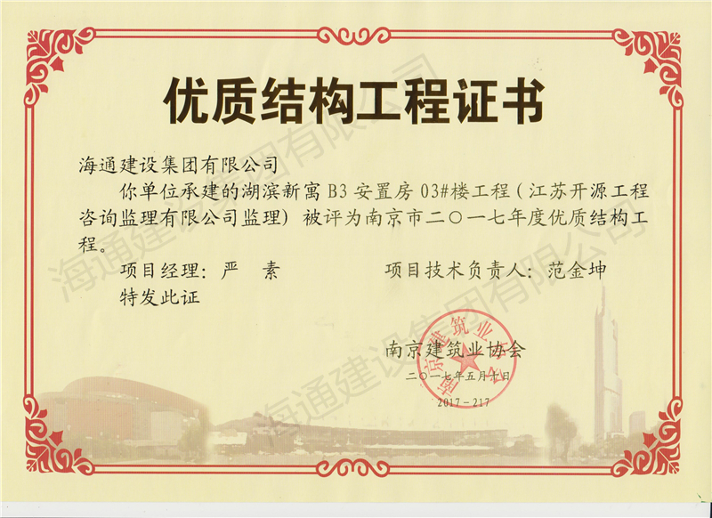 南京市優(yōu)質(zhì)結(jié)構(gòu)2017湖濱新寓B3安置房03#樓工程