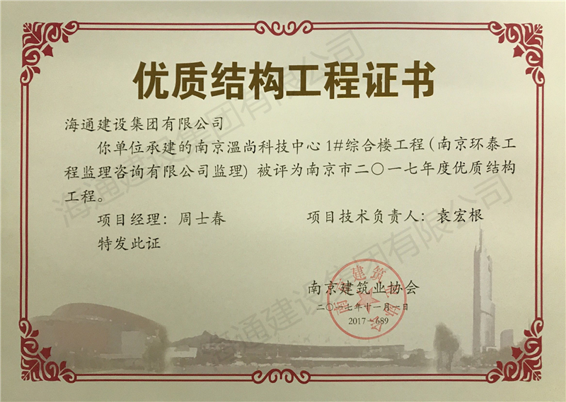 南京市優(yōu)質(zhì)結(jié)構(gòu)2017南京溫尚科技中心1#綜合樓工程