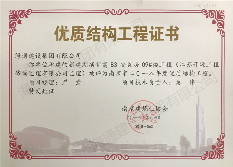 南京市優(yōu)質(zhì)結(jié)構(gòu)2018新建湖濱新寓B3安置房09#樓工程