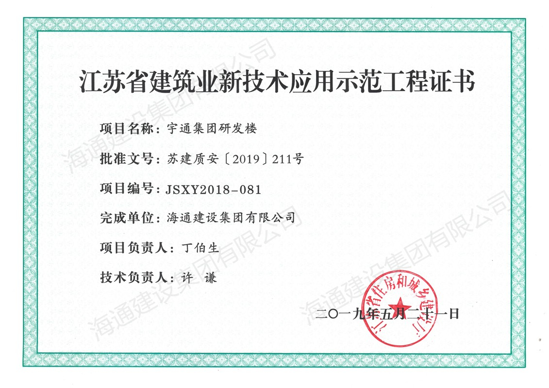 江蘇省建筑業(yè)新技術(shù)應(yīng)用示范工程2019宇通集團研發(fā)樓